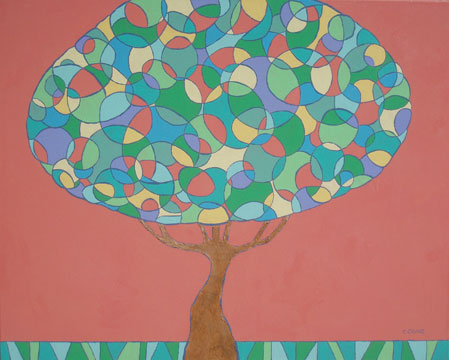 Feeling Groovy-Coral Mixed Media on Gallery Wrap Canvas 24"x30" $1550 One of the three "Feeling Groovy" tree paintings with the background in a salmon or coral color. Modern abstract tree painting on canvas. |