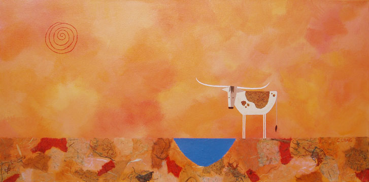 Longhorn at Blue Hole Mixed Media on