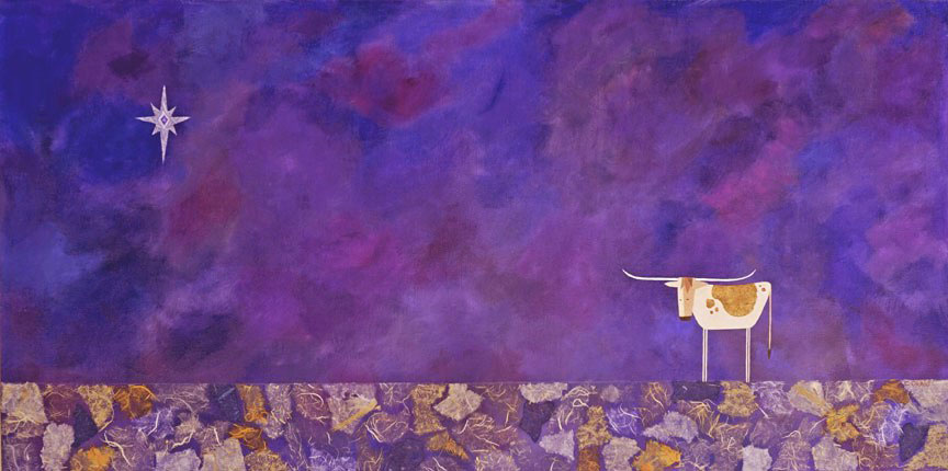 A peaceful nocturnal longhorn painting. The rich purple colors were a joy to paint.