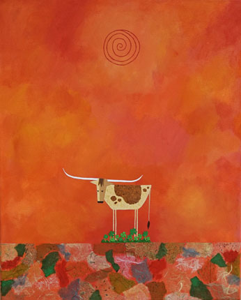 Lucky Longhorn Mixed Media on