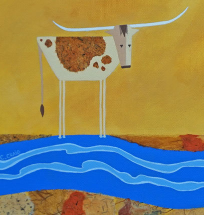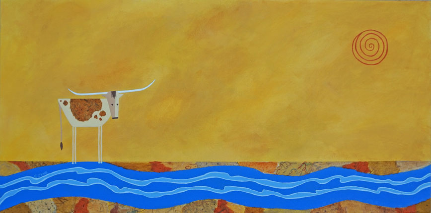 This longhorn is enjoying a little reprieve from the heat at the river's edge.