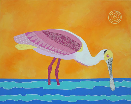 Spoonbill Sunrise Mixed Media on