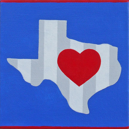 stripes heart and bright color in the shape of Texas