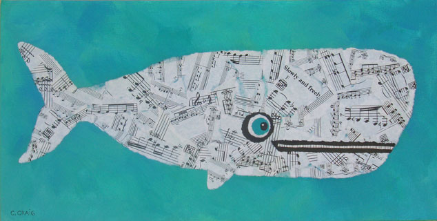 Music collage whale painting whimsical |