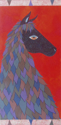 Wooly paintings have the same colors. Available from River's Edge Gallery, Kerrville, Texas. Contemporary stylized llama alpaca art painting. |
